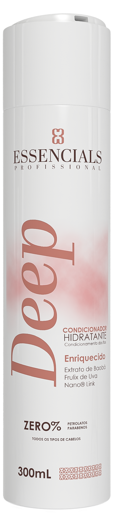 O condicionador Deep hidratante Essencials é um condicionador hidratante, indicado para todos os tipos de cabelos, desde o cabelo natural aos quimicamente tratados, lisos, coloridos, descoloridos, cacheados e alisados.