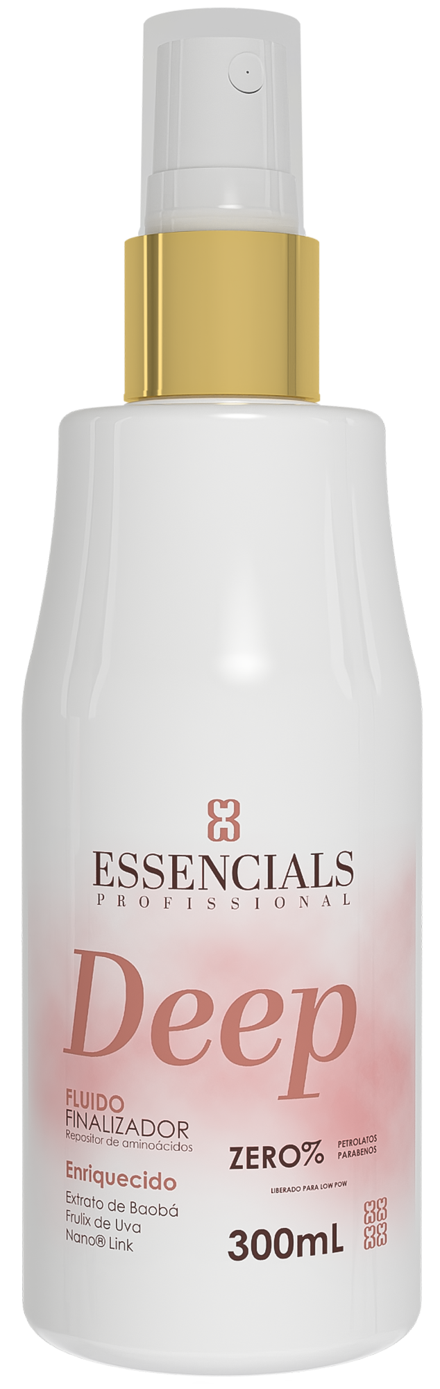 O Fluido Finalizador Essencials Deep é um creme capilar que desembaraça o seu cabelo facilmente, Indicado para todos os tipos de cabelos, desde o cabelo natural aos quimicamente tratados, lisos, coloridos, descoloridos, cacheados e alisados, deixando os fios sedosos e maleáveis, doa brilho aos fios, recompõe a estrutura dos cabelos protegendo contra as agressões do dia a dia.