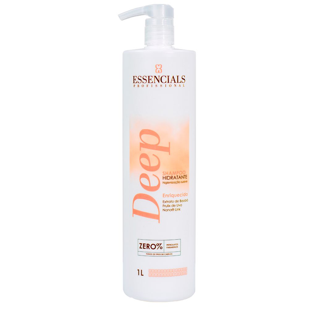 O shampoo Hidratante Deep Essencials é um shampoo hidratante indicado para todos os tipos de cabelos, desde o cabelo natural aos quimicamente tratados, lisos, coloridos, descoloridos, cacheados e alisados. Ele higieniza o cabelo e o couro cabeludo, proporcionando uma limpeza suave e hidratante.